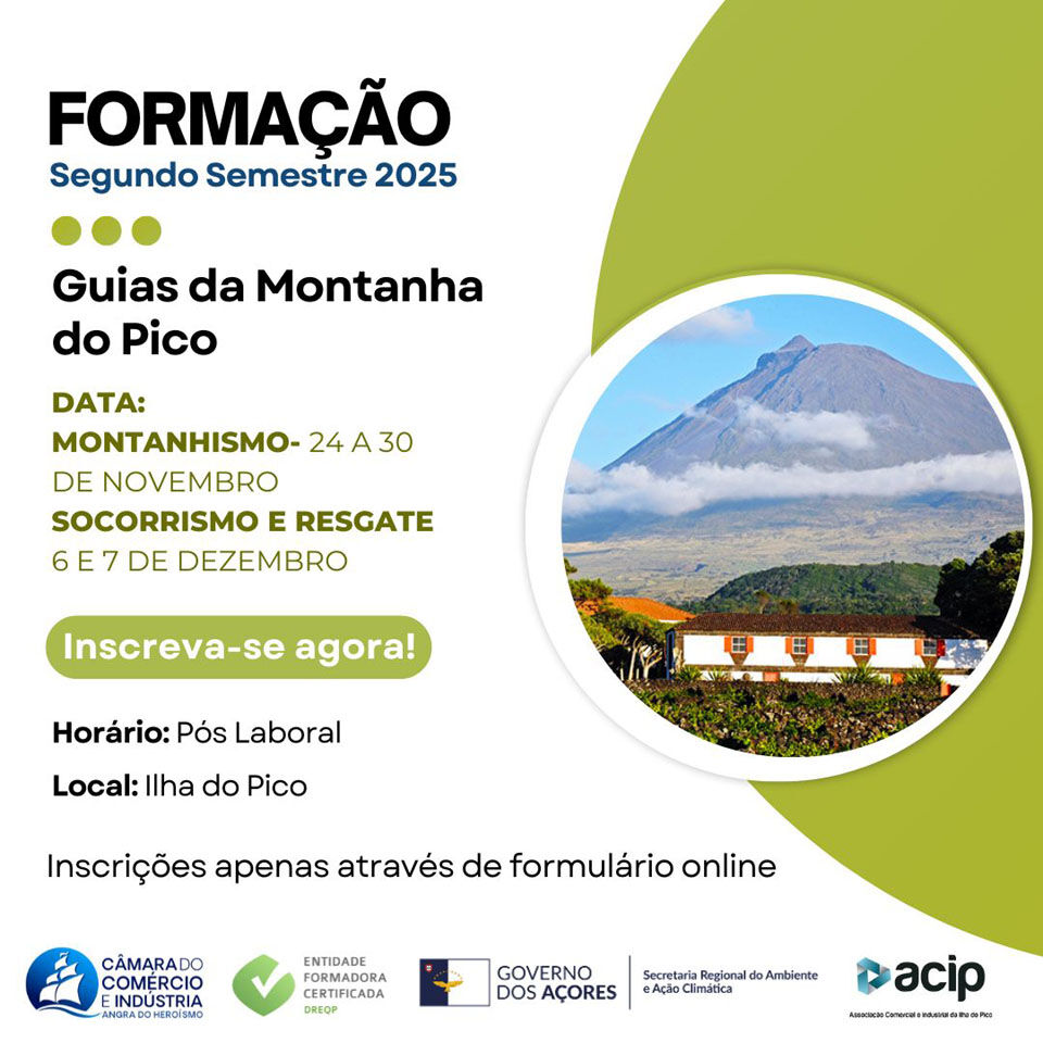 A Secretaria Regional do Ambiente e Ação Climática em colaboração da ACIP a Câmara do Comércio e Indústria de Angra do Heroísmo promove o curso de Guia da Montanha do Pico.