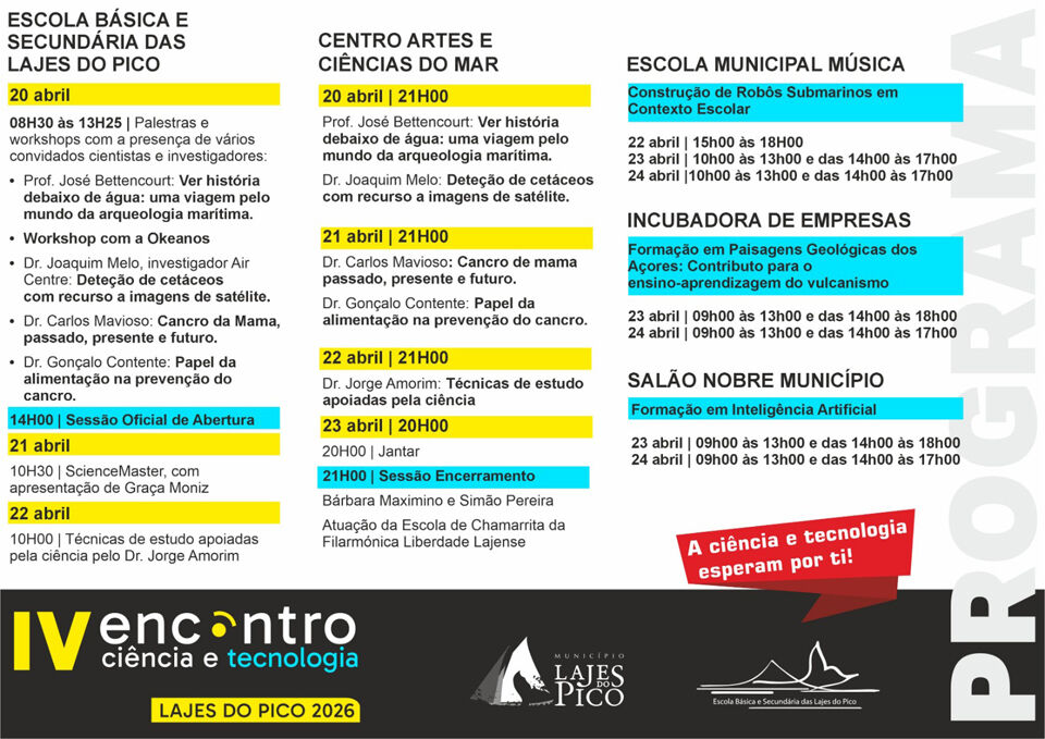 O concelho das Lajes do Pico recebe até 24 de abril, o IV Encontro de Ciência e Tecnologia.