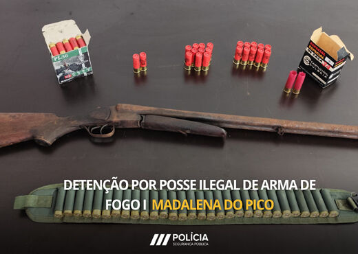 O Comando Regional da Polícia de Segurança Pública dos Açores informa que os polícias da Esquadra da Madalena do Pico procederam à detenção, no dia 15 de abril, de um homem de 48 anos, pela suspeita da prática do crime de posse ilegal de arma de fogo, no concelho da Madalena do Pico.
